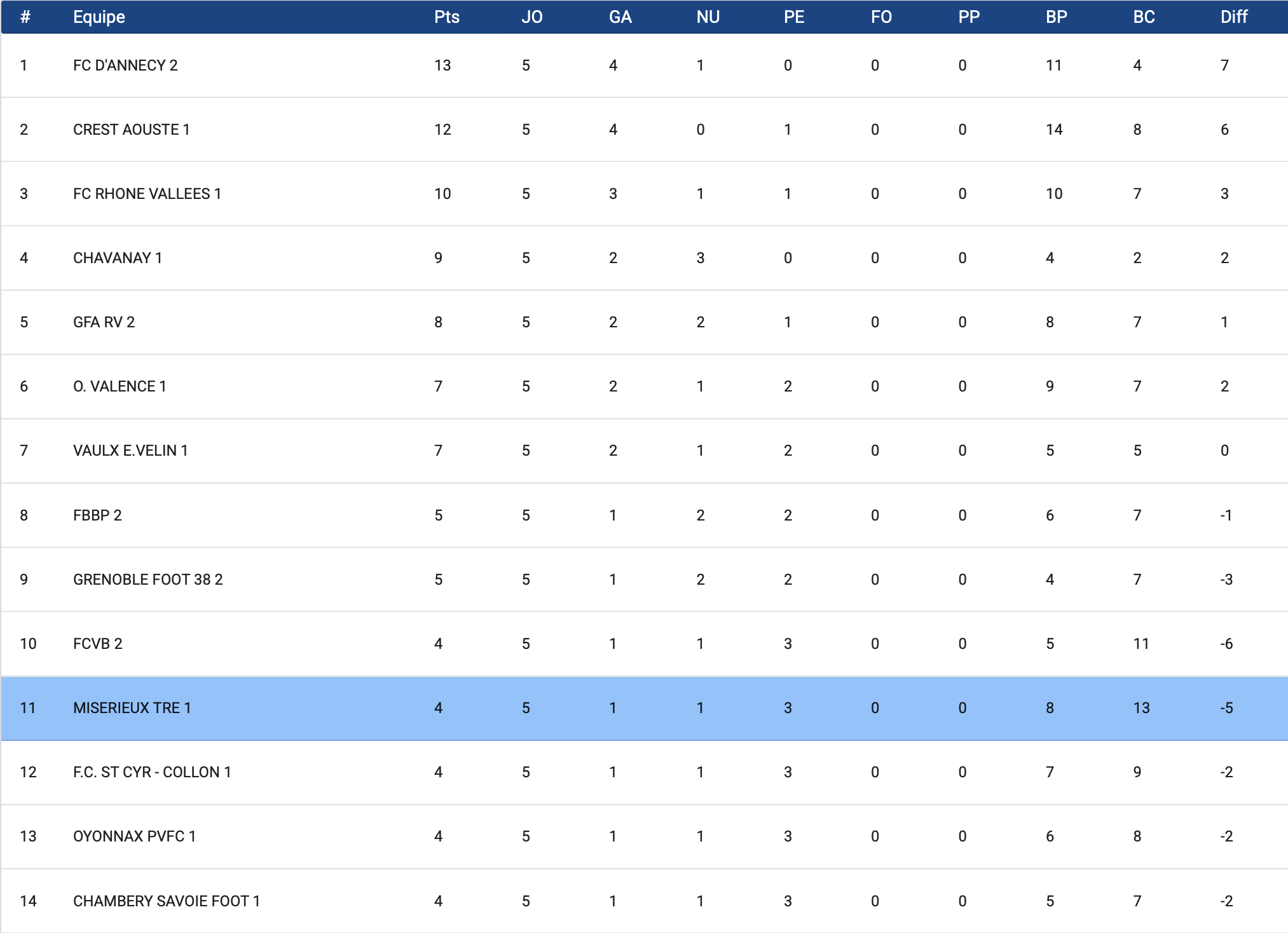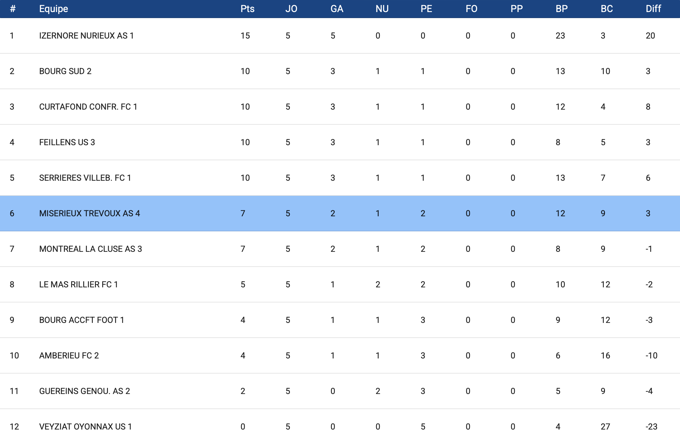 Anthony HUMBERT : « Reprise du championnat après un week-end de pause avec la réception de Lagnieu. Nous sommes parvenu à tout de suite rentrer dans le match en marquant assez rapidement, les gars étaient concentrés et disciplinés à la perte. Ces efforts nous ont permis de rentrer au vestiaire en menant 2-0 ! La reprise a été laborieuse le manque de rythme et de justesse technique nous a mis en difficulté mais nous avons terminé le match en menant 3-0. Bravo aux joueurs pour cette performance, grâce à cette bonne semaine de travail nous avons pu produire un match sérieux et cohérent, le gros reste à venir il va falloir en faire encore plus ensemble… Grand merci à Ben pour son aide de champion et à Pascal pour la touche, je souhaite une bonne saison à Lagnieu. Bonne semaine à tous ! »