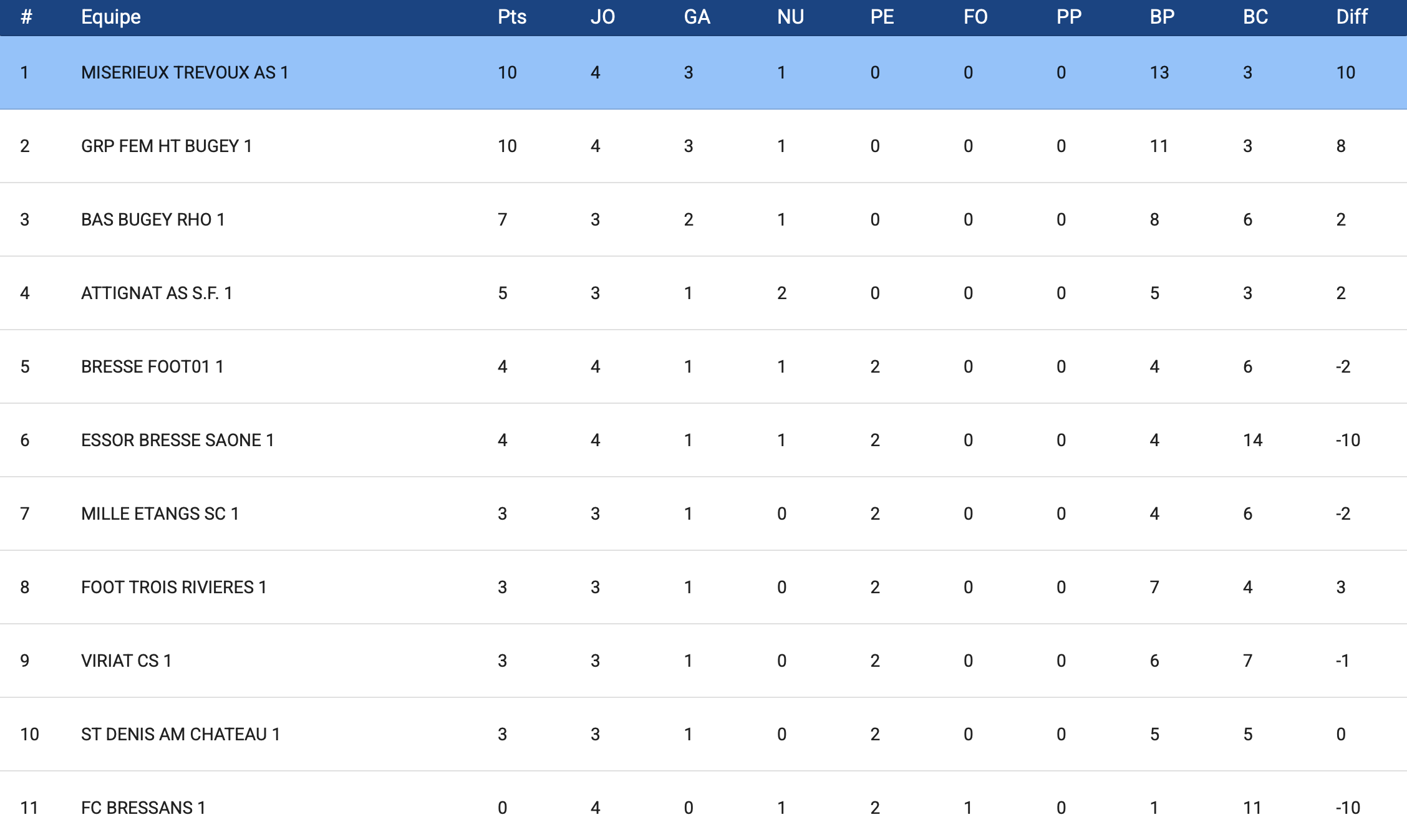 Thomas BLANC : « Quatrième match de championnat à l’extérieur face à une bonne équipe d’ATTIGNAT qui nous a mis énormément en difficulté. Une première période très décevante , la pire de toute la saison. Manque d’intensité , de déplacements, de mobilité avec et sans ballon , de l’énervement collectif et individuel. Je n’ai pas reconnu l’équipe. L’équipe adverse nous a marché dessus en terme de débauche d’énergie et d’intensité dans le pressing et les duels. On s’en sort bien en ne perdant que 1/0 à la pause. Une deuxième période plus qualitative , les ajustements à la mi temps on fait effet ! Plus de présence au marquage , plus proches au pressing, couplé avec une baisse de rythme adverse on a su faire preuve de caractère en revenant en fin de match après avoir encaissé un deuxième but une une énième contre attaque adverse bien menée … Nous devons nous améliorer dans le calme face à des adversaires plus efficaces et agressifs , cela va nous permettre d’être moins en difficulté dans ce genre de matchs ! Merci à Louis pour la touche , Charly pour son aide , et aussi aux spectateurs présents pour leur soutien ! »
