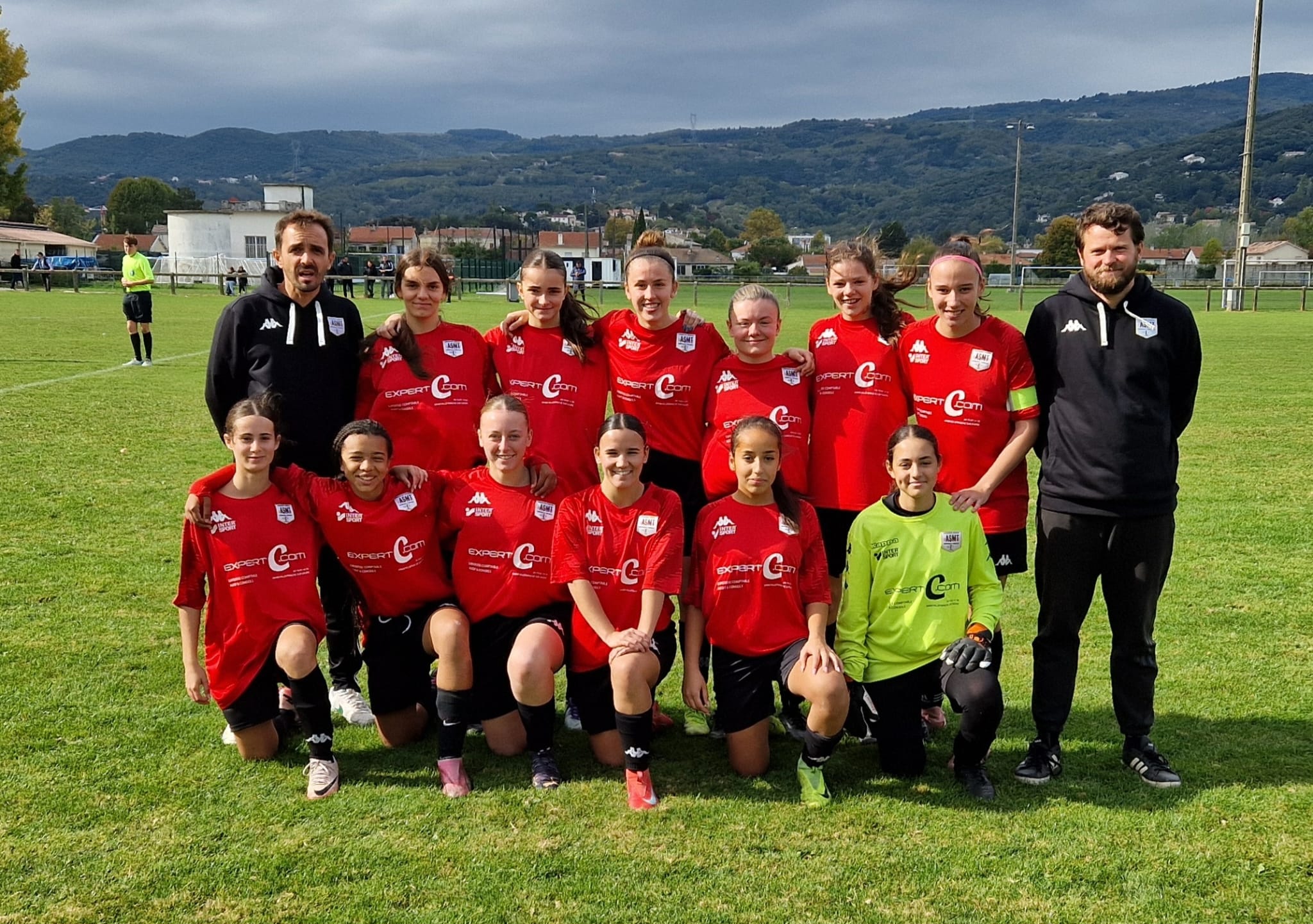Matthieu ROLLET : « Nouveau match de championnat contre une équipe de notre niveau au classement. Les filles ont su écouter les consignes, notamment sur les relances et le repli défensif , ce qui a permis de conserver un bloc solide et bien organisé tout au long de la rencontre. Sérieuses, appliquées et solidaires, elles ont été récompensées par trois buts et une victoire pleinement méritée ! Nous ouvrons le score dès la 5e minute sur un coup franc d’Aude, dévié par la défense adverse. Margot M double ensuite la mise, justement récompensée de ses nombreux efforts. Mi-temps : 2–0. Au retour des vestiaires, les filles repartent avec la même envie et le même esprit collectif. Nous concédons un but sur une belle action adverse, à la suite d’une petite erreur de placement, mais sans jamais perdre notre concentration. Sur un corner direct, Aude inscrit un doublé et scelle le score à 3–1 ! Bravo à toutes les joueuses qui, malgré des résultats précédents compliqués, ont su rester motivées, impliquées et solidaires pour décrocher cette victoire tant attendue. Un grand merci à Louis, David et Thomas pour leur aide précieuse, ainsi qu’aux joueuses blessées venues encourager l’équipe et aux Seniors F pour leur présence et leur soutien. Bonnes vacances à toutes. »