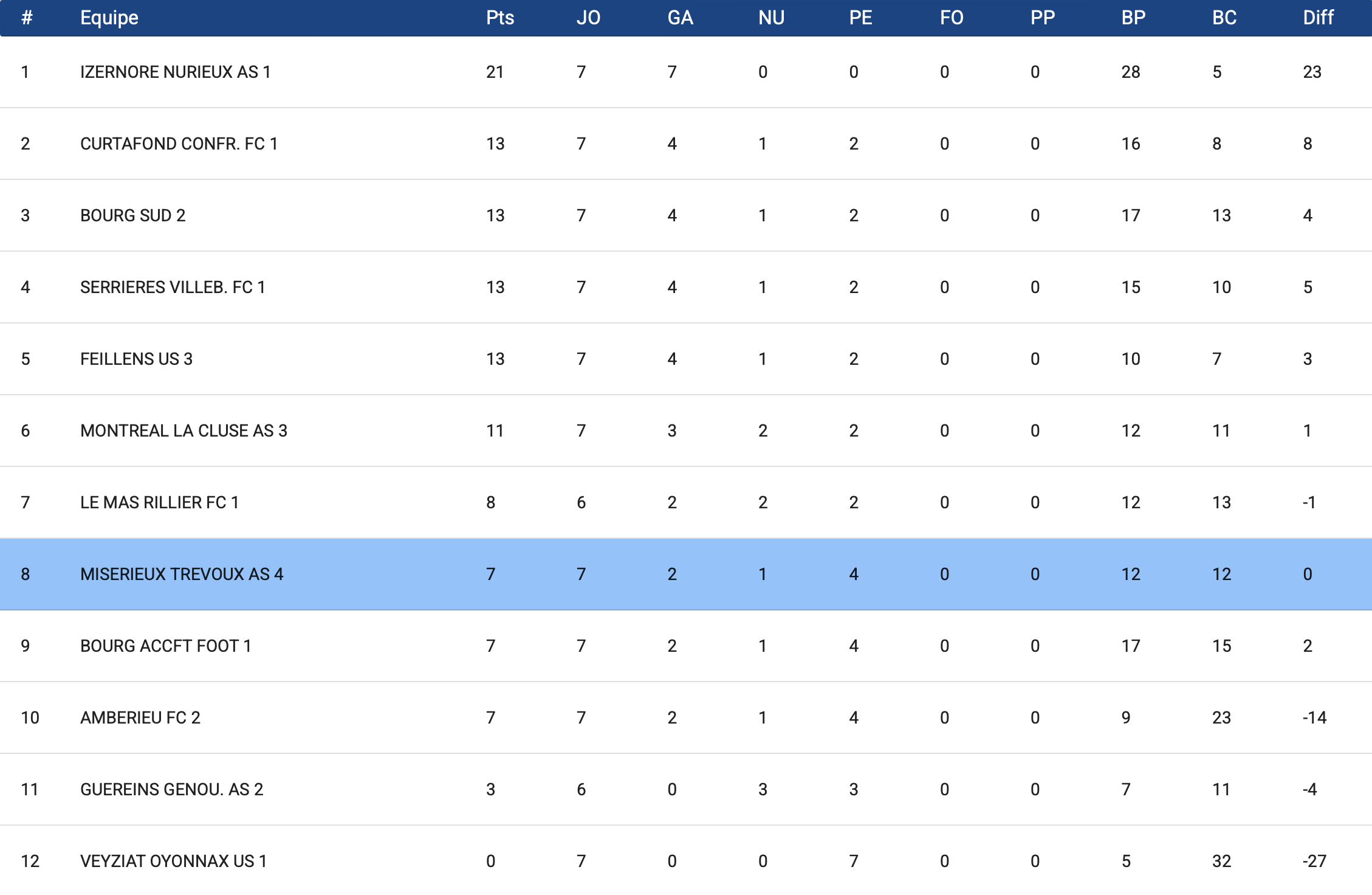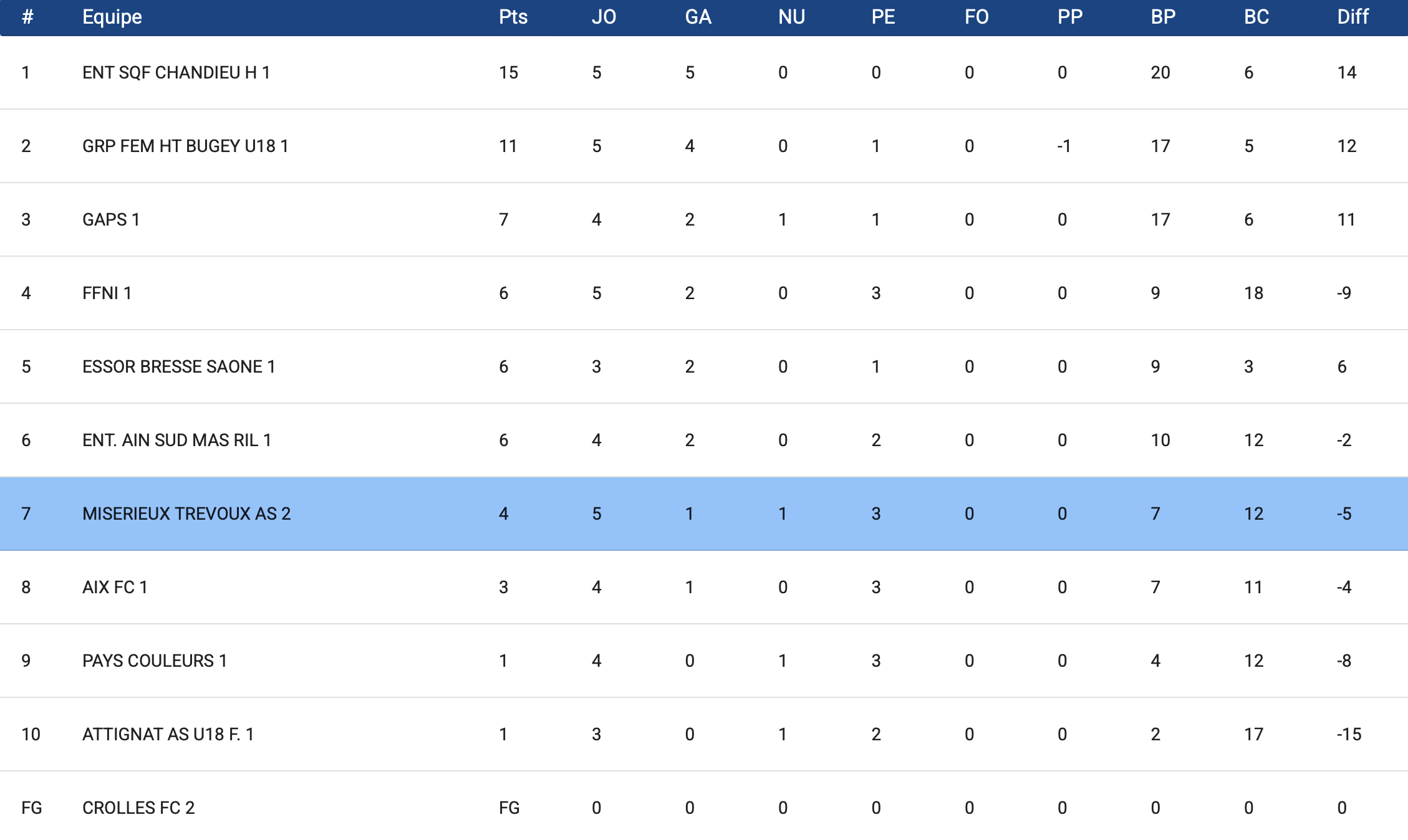 Killian BESSON : « Prestation collective catastrophique des 14 joueurs ce samedi. Pourtant prévenu sur la qualité de Chambéry individuellement et collectivement, nous avons été dépassé dans tous les compartiements du jeu, dans certaines situations de jeu nous avons même frolé le ridicule. Le football ramène très rapidement les joueurs manquant d’humilité à la réalité. Il n’y a rien à retenir de positif sur cette rencontre mais j’espère que la somme d’individualité de ce samedi prendra conscience du monde d’écart entre le Misérieux Trévoux d’il y a une semaine à Fetan et celui qui est allé se promener à Chambéry avant hier. Merci à Steph pour son repas d’avant match une nouvelle fois parfait. Bravo à nos équipes de jeunes et seniors pour leur performance du week end ! »