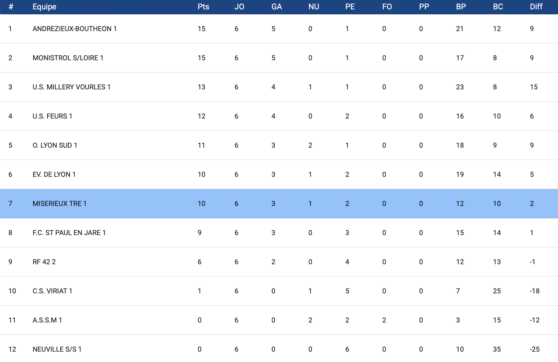 Bilan : 5 Victoires – 2 Défaites – 1 Nul