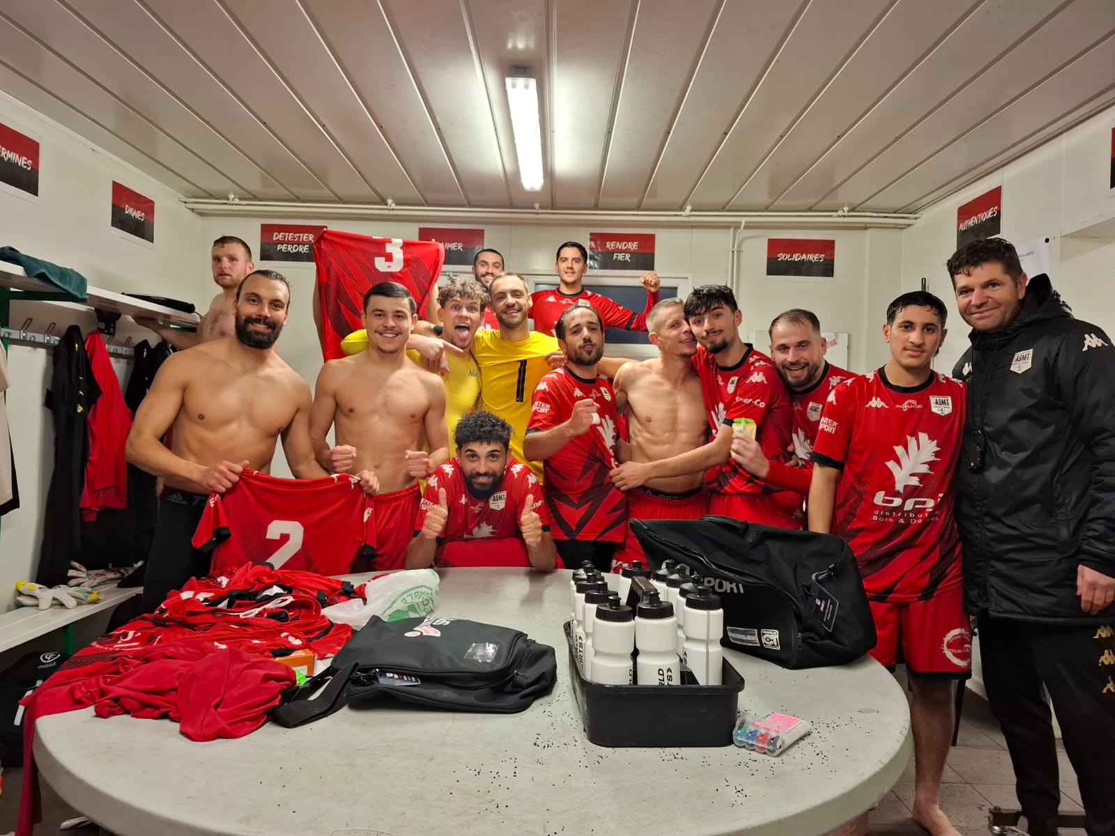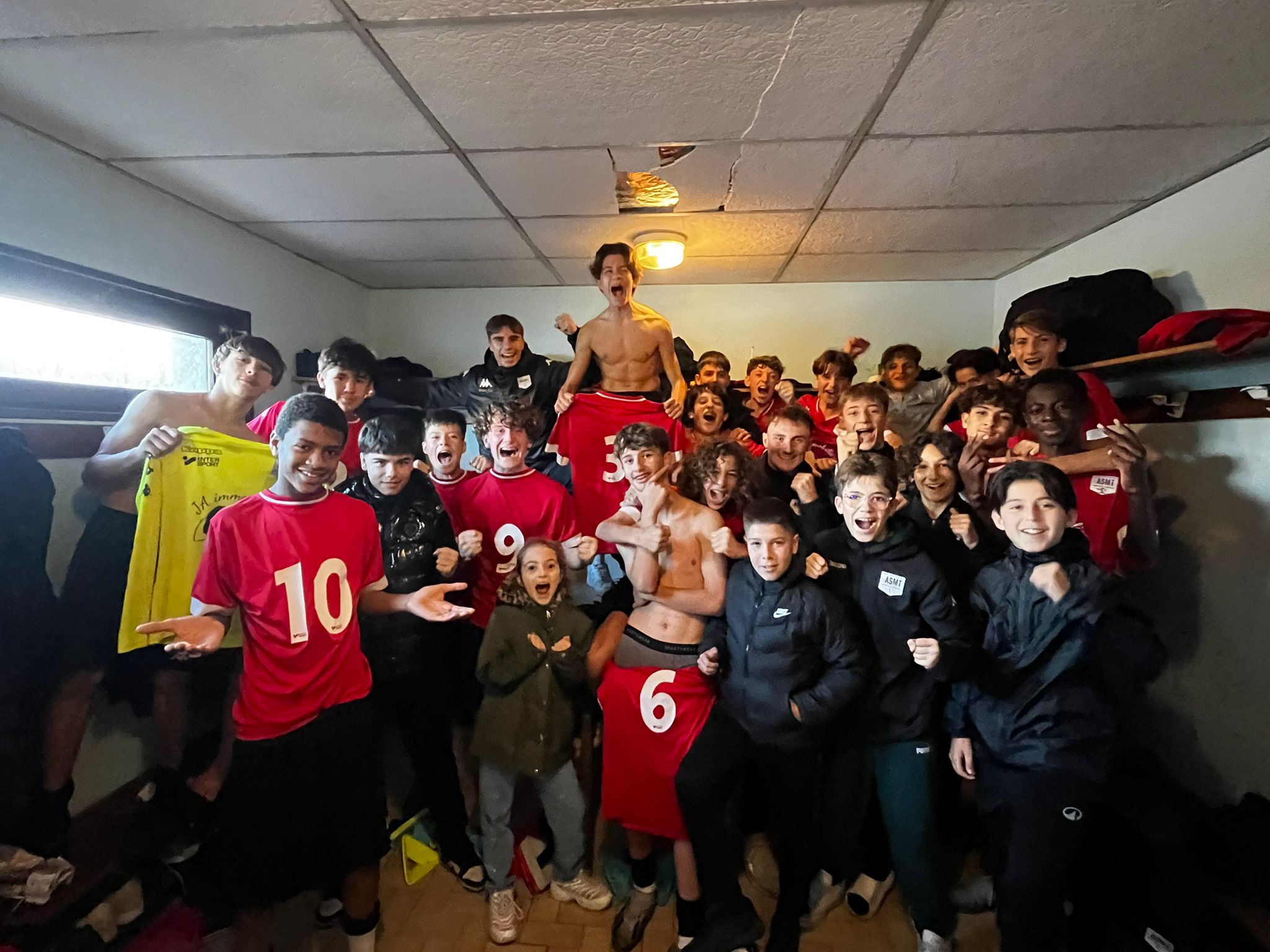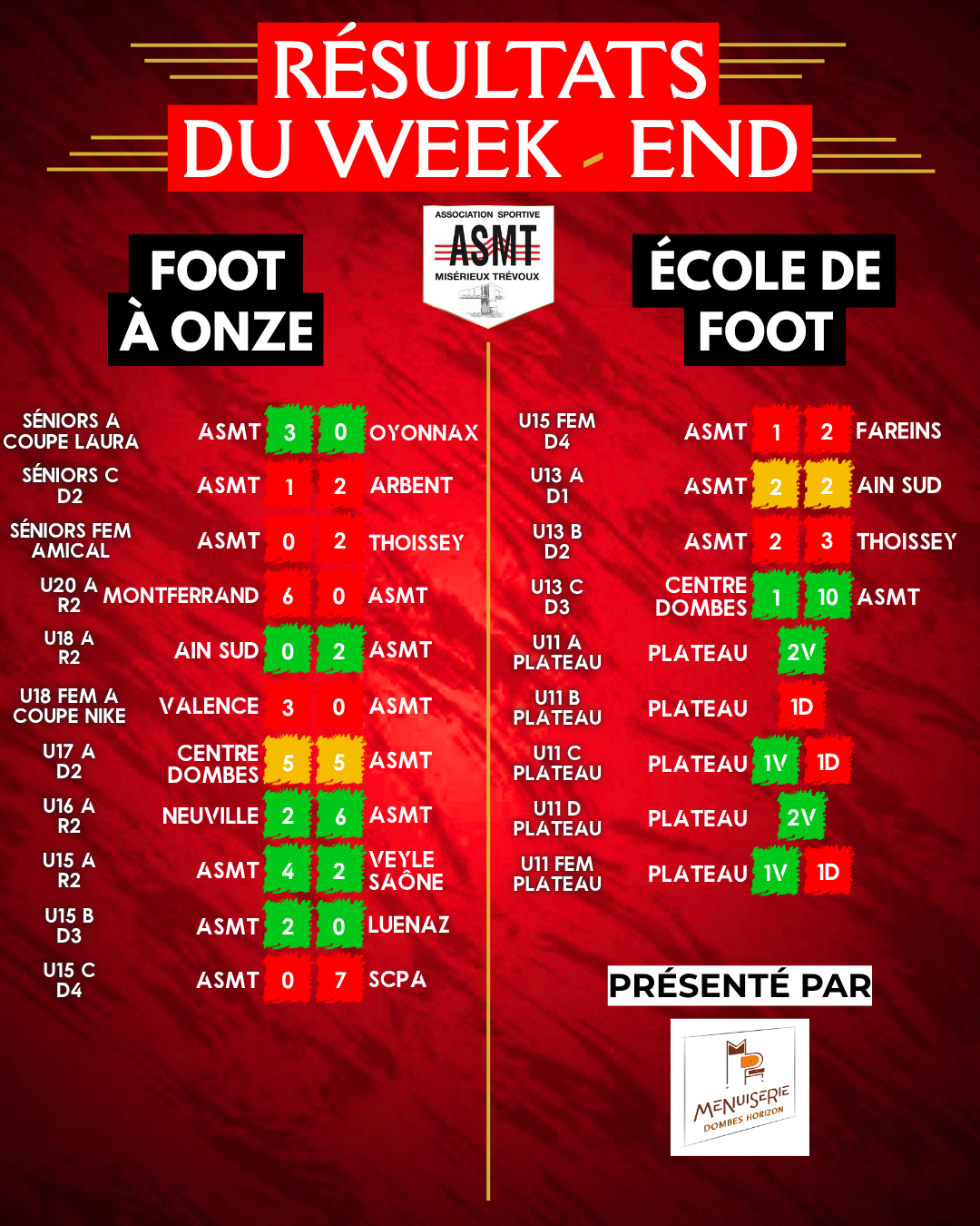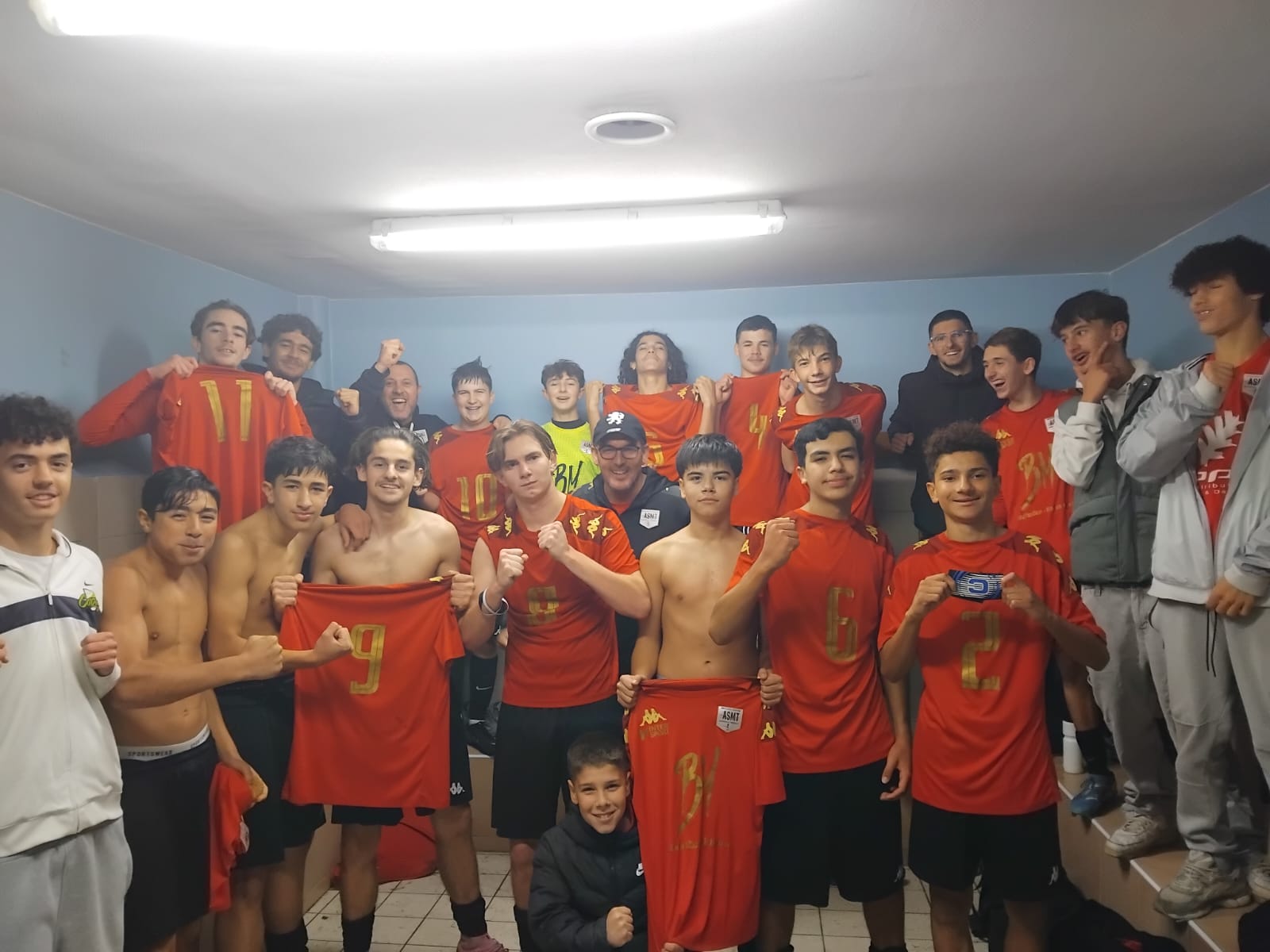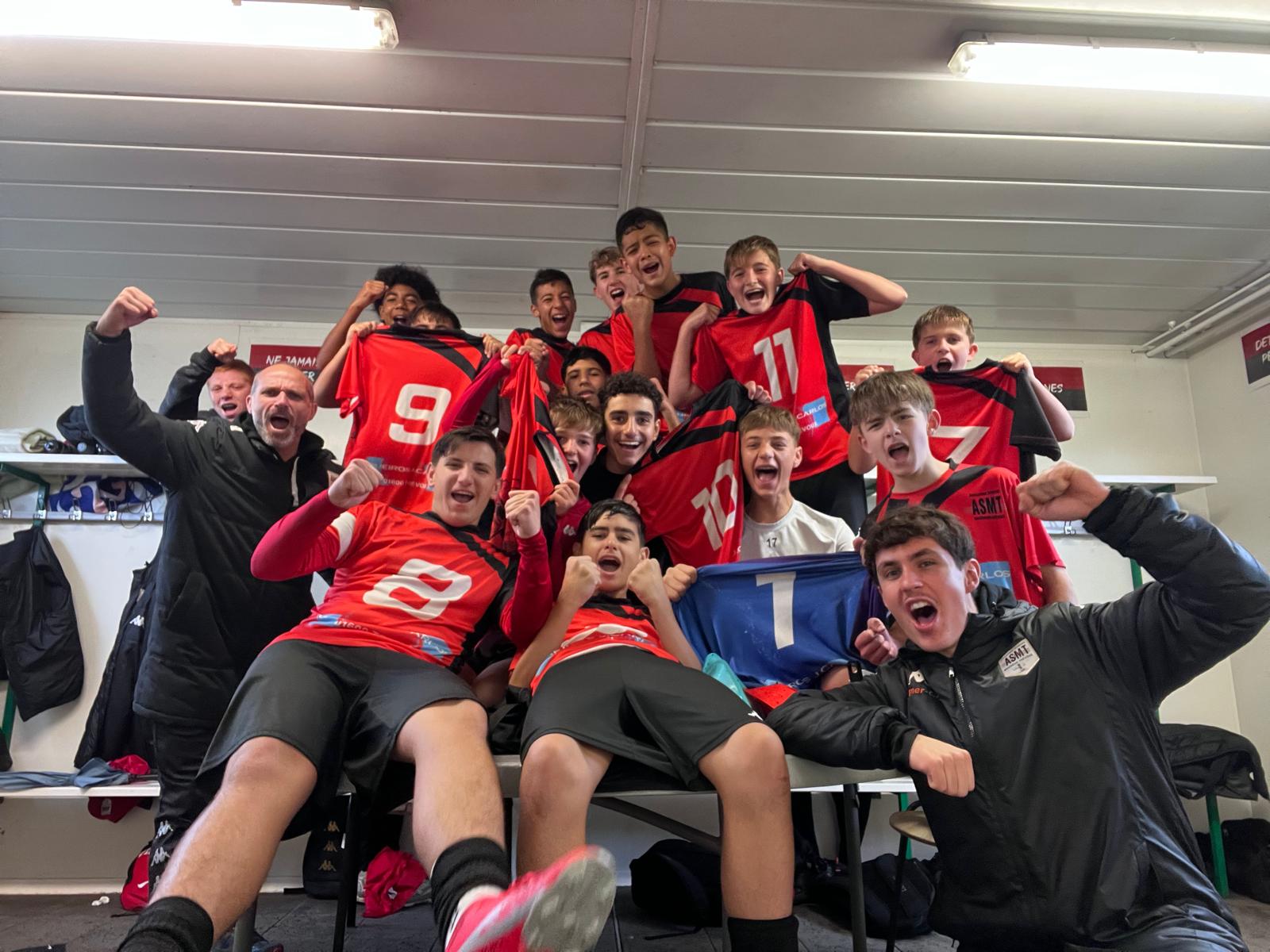 Hugo SOTO : « Nous nous déplaçons en tant que leader chez les 7ème de la poule, avec pour idée d’accroître notre avance sur les seconds et troisièmes (qui se rencontrent au même moment) et réaliser un pas de plus vers la montée. Et que dire… que dire quant à notre déception. Que dire quant au non-respect du plan de jeu mis en place et des valeurs, pourtant si chères, que l’on inculque chaque jour à l’ASMT… Comme un revers de main dans un château de carte, certains se sont permis de les bafouer. Nous commençons par encaisser un but, autour de la 15e minute, sur une erreur défensive bien exploitée par l’adversaire, la première d’une longue série. Nous avons plutôt bien réagi en inscrivant 3 buts coups sur coups, 3-1 en notre faveur, dès la 30e minute. Puis vient le début d’une mauvaise blague. Un de nos joueurs fait l’objet d’un carton blanc pour des paroles déplacées envers un adversaire. Lorsqu’il refoule la pelouse, nous sommes menés 4 à 3. Oui, nous avons encaissé 3 buts, certains sur d’autres erreurs défensives, certains sur coup de pied arrêtés… sans avoir la personnalité et le courage nécessaire pour réagir. Nous rentrons alors au vestiaires menés d’un point, avec beaucoup d’amertume. L’idée était de presser haut, nous n’avons été capable de le faire qu’à 2, ou 3 reprises durant la mi-temps, laissant la liberté aux joueurs adverses de trouver des ballons dans notre dos, ou entre nos lignes. Et s’il fallait décrire nos joueurs dans la notion de duels, je dirais « méconnaissables ». Le début de seconde période est légèrement mieux, avec une « domination » (même si encore trop fragile) pour les rouges et noirs, mais peu d’efficacité offensive. Nous avons même bénéficié de deux cartons blancs, nous donnant une supériorité numérique (11 contre 9) non-négligeable. Ils ont été capable de nous mettre trois buts lorsque nous étions un de moins. Nous, seulement 1. En étant 2 joueurs de plus. On revient donc péniblement à 4-4, après un changement de poste de Noa qui se retrouve 9 et relance l’équipe. Au retour des deux joueurs adverses, à égalité numérique, le match redevient plus équilibré, et nous recommençons à douter, à offrir des ballons, à reculer… et ce qui devait arriver arriva, nous encaissons un but sur un CSC, manque de communication entre nos joueurs, manque de confiance. Il reste alors 15min de jeu, et nous poussons pour partir de Villars avec 1 point au moins. Ce n’est qu’en fin de rencontre, sur un coup de pied arrêté en notre faveur (le SEUL sur les 10/15 obtenus à être bien joué) que nous revenons à hauteur de Centre Dombes. Nous avons évité de peu la défaite mais c’est tout comme, au vue de notre prestation. On a manqué de tout. Nous avons grillé notre joker pour cette 1ère partie de saison. Il n’y aura plus de place à l’erreur si nous souhaitons encore être leaders jusqu’à la fin. Bravo à Centre Dombes, une équipe qui nous a bousculé, mangé dans les duels et qui a su mener intelligemment ses attaques. Une équipe également conquérant sur coup de pied arrêté. Merci pour leur accueil, merci à Ilyes Zitouni qui est venu encourager ses potes et qui a même pris la touche, merci aux quelques parents venus supporter l’équipe. Il faudra savoir rebondir, avec la manière, pour gommer cette mauvaise performance. »