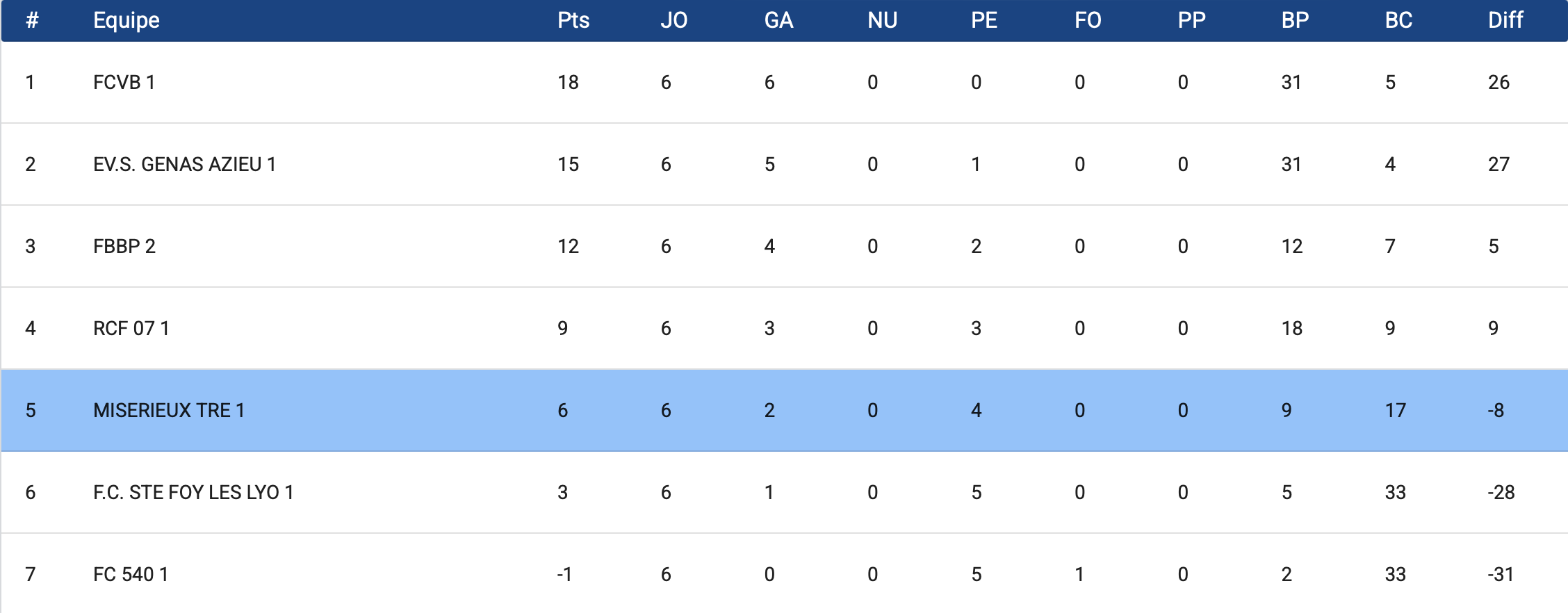 Bilan : 3 Victoires – 1 Nul – 4 Défaites