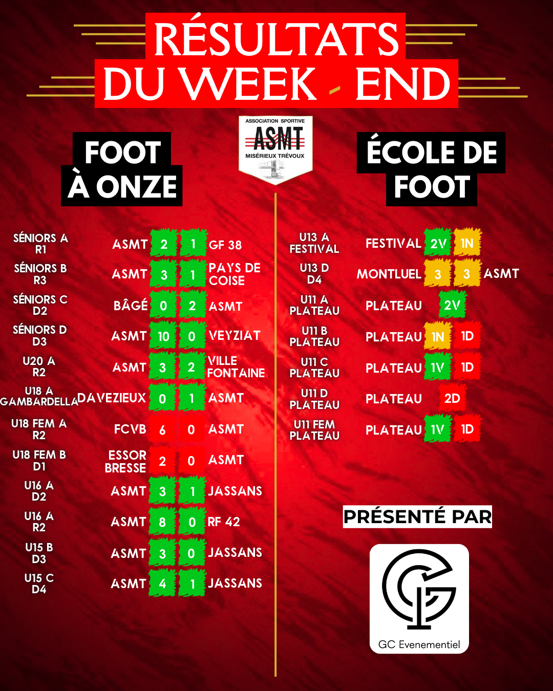 Ethan ROMANO : « Ce dimanche nous jouions face à Jassans un match très important dans l’optique de repasser devant au classement. Les joueurs ont réalisé une première mi-temps moyenne, où nous avons clairement vu que Jassans n’avait pas les armes pour nous faire mal, ce dont nous avons profité pour revenir au vestiaire à 2 buts à 1, score qui aurait pu nous être bien plus favorable, au vu du nombres d’occasions nettes procurées. Les joueurs sont revenus sur le terrain en 2ème avec un meilleur visage qu’en première ce qui nous a permis de tout de suite enfoncer le clou avec des assauts répétés et un 3ème but avant d’en mettre un 4ème en fin de match, assurant la victoire ! Bravo aux joueurs qui récupèrent leur place en haut du classement avant de livrer 2 grosses batailles où nous seront maîtres de notre destin pour obtenir cette première place ! Bravo aux équipes de foot à 11 pour le sans-faute du weekend et merci à Thomas pour l’arbitrage ! »